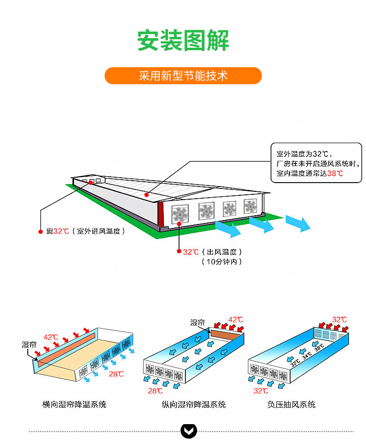 公司致力于發展提高節能環保領域及通風降溫系統工程,適用各類工廠車間,關殖場,網吧降溫需求。我司水簾片,濕簾墻質地堅硬,抗壓力高,吸水性好,不易變形,不縮水。
