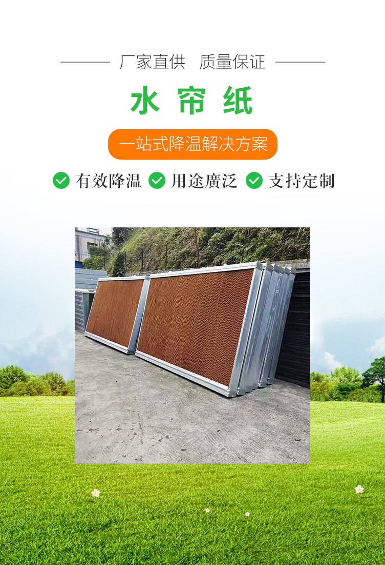 公司致力于發(fā)展提高節(jié)能環(huán)保領(lǐng)域及通風(fēng)降溫系統(tǒng)工程,適用各類(lèi)工廠車(chē)間,關(guān)殖場(chǎng),網(wǎng)吧降溫需求。我司水簾片,濕簾墻質(zhì)地堅(jiān)硬,抗壓力高,吸水性好,不易變形,不縮水。
