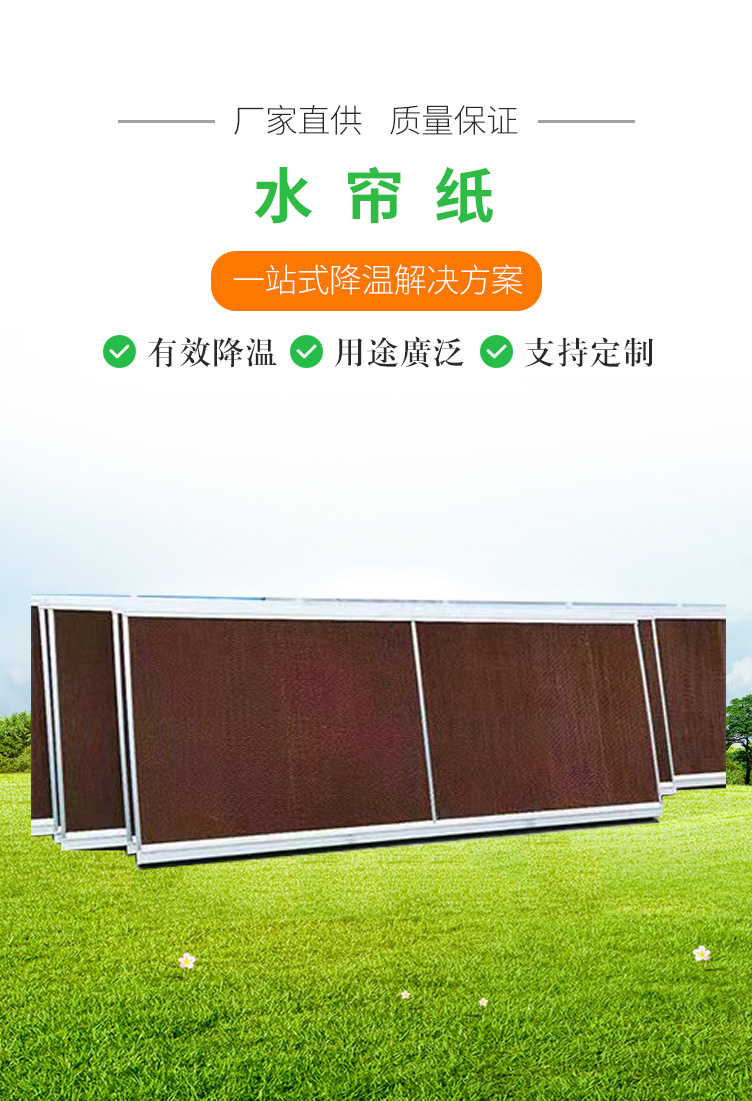 公司致力于發展提高節能環保領域及通風降溫系統工程,適用各類工廠車間,關殖場,網吧降溫需求。我司水簾片,濕簾墻質地堅硬,抗壓力高,吸水性好,不易變形,不縮水。