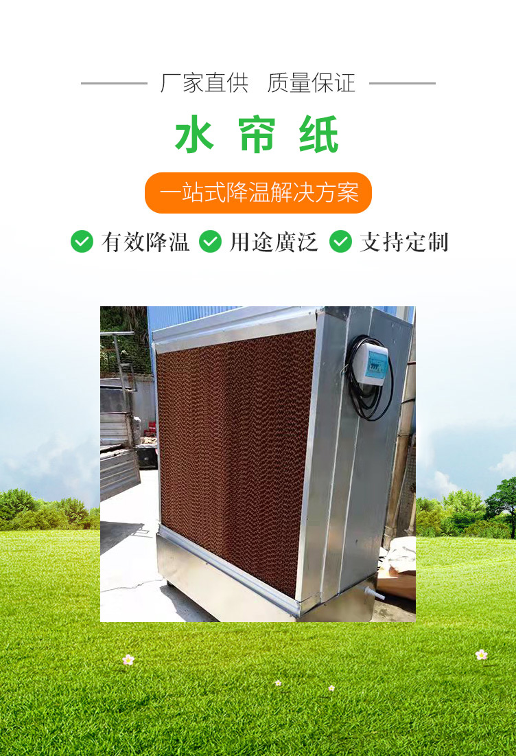 公司致力于發(fā)展提高節(jié)能環(huán)保領(lǐng)域及通風(fēng)降溫系統(tǒng)工程,適用各類工廠車間,關(guān)殖場,網(wǎng)吧降溫需求。我司水簾片,濕簾墻質(zhì)地堅硬,抗壓力高,吸水性好,不易變形,不縮水。