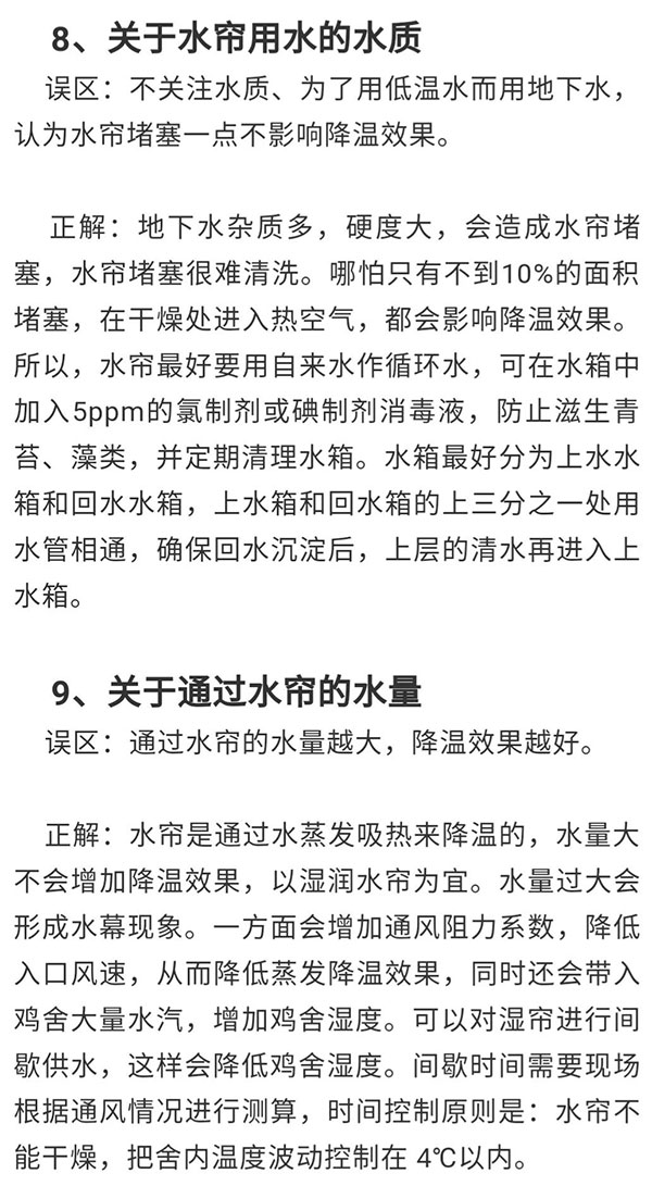 誤區:水簾是通過冷水對空氣冷卻來降低進入雞舍空氣溫度的。